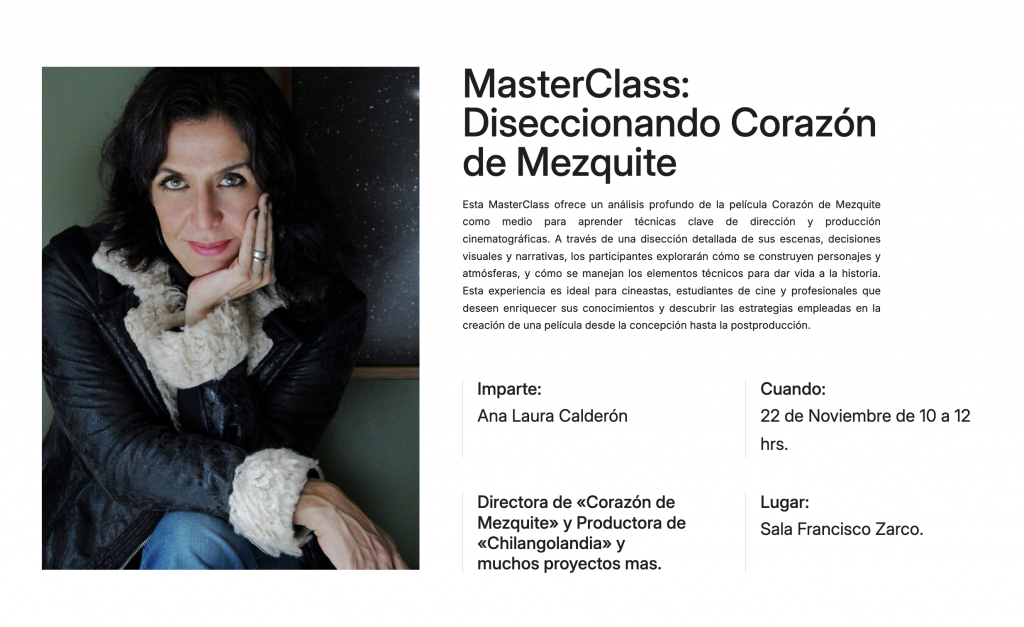 She has taught workshops and courses on Film Editing at the EICTV, CCC, UPAEP, UAEM, Escuela Veracruzana de Cine Luis Buñuel and Instituto Ruso Mexicano de Cine y Actuación Sergei Eisenstein.